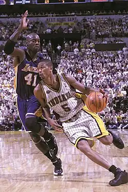 In the 2000 Playoffs, Rice averaged 12.4 points per game while shooting 41 percent from beyond the three-point arc, a career-best for the playoffs. The Lakers defeated the Sacramento Kings, Phoenix Suns, and Portland Trail Blazers in the first three rounds of the playoffs en route to advancing to the 2000 NBA Finals to play the Indiana Pacers. In the second game of the Finals, Bryant suffered an ankle injury, and Rice scored 21 points to help the Lakers take a 2–0 lead in the series. Rice would average 11.5 points a game for the series, including 16 points with 3 shots from three-point range in Game 6 as the Lakers defeated the Pacers 4 games to 2 to give Rice his first and only NBA championship.