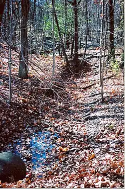 Glenview Creek in Harms Woods, flowing west towards the Chicago River via a shallow, winding ravine.