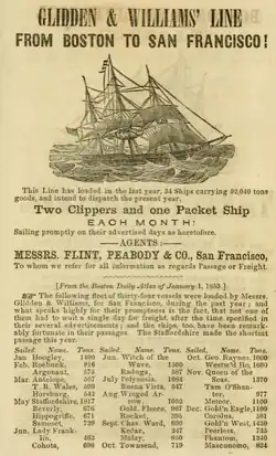 Glidden & Williams was a Boston-based clipper ship packet line which ran ships primarily between Boston and California in the 1850s and 1860s. It was a partnership between William T. Glidden and John M. S. Williams, formed in 1849.[1]