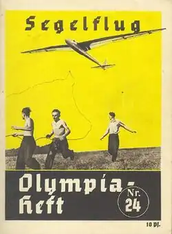 Cover of one of 26 booklets produced for the 1936 Olympics describing each sport. It illustrates a glider being bungee launched