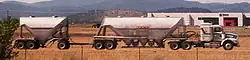 A combination of three pup trailers. Legal in 17 states, usually restricted to major highways, toll roads, or freeways.[45]
