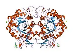 Glycoside hydrolases EC 3.2.1. are a widespread group of enzymes that hydrolyse the glycosidic bond between two or more carbohydrates, or between a carbohydrate and a non-carbohydrate moiety. A classification system for glycoside hydrolases, based on sequence similarity, has led to the definition of >100 different families.[1][2][3] This classification is available on the CAZy web site,[4][5] and also discussed at CAZypedia, an online encyclopedia of carbohydrate active enzymes.[6][7]