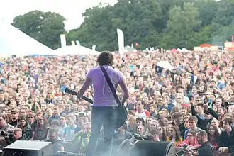 The festival includes a dedicated Main Stage[2] which has played host to a wide array of mainstream and independent acts, including Kasabian, Biffy Clyro, The Charlatans, The Boomtown Rats, Scouting For Girls, The Wombats, Don Broco, Embrace, Fun Lovin' Criminals, the Buzzcocks, the Happy Mondays and The Enemy. The other large stage on the Main Field is the Rock/Rhythm Tent, which plays host to rock/metal acts on Friday night, and has seen artists such as Neck Deep, Slaves and Kids in Glass Houses perform since its introduction in 2014. Saturday's Rhythm Tent[3] has seen acts such as Fuse ODG, JME, Big Narstie and D Double E.