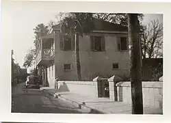 Despite a street being named for the Leonardy family in West Saint Augustine, the Leonardys in fact dominated this south neighborhood between Bridge and Saint Francis Streets beginning with their arrival in 1777. According to the Saint Augustine City Directories, the descendants of Roque Leonardy and Agueda Coll occupied four different houses in a single block of Marine Street for a period of more than two centuries. Juan Leonardy's grandchildren and great grandchildren lived at 63 Marine Street until at least 1924. Another Juan Leonardy grandchild, Kate Leonardy (who married Will Desselberger) was a resident of 53 Marine Street until at least 1914. Juan's brother was Bartolome Leonardy whose daughter Laureanna Leonardy lived for eighteen years at 67 Marine Street, a house which was later owned into the 20th century by William Slade Pinkham, who was her nephew.[20] After Bartolome's death (1844), his widow, Antonia Paula Bonelly, lived with family in several of these houses. She died at 56 Marine Street in 1870. The other five siblings of Juan and Bartolome Leonardy did not settle in Saint Augustine, but were instead among the earliest pioneers of Tampa, Florida, where they ventured with the assistance of Adolphus Pacetty in 1855.[21]