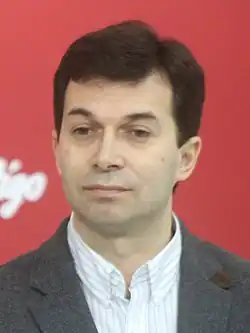 He ran 9th in the Socialists' Party of Galicia (PSdG-PSOE) list vis-à-vis the 2003 Vigo municipal election.[6] Caballero was not elected then, as the list only obtained 8 seats, but he became a municipal councillor in September 2005 covering the vacant seat left by Ventura Pérez Mariño.[3] He would not stand up for reelection in the 2007 municipal election. For several years Caballero held important political differences with his uncle Abel (Mayor of Vigo since 2007), although according to Caballero they reportedly did not transcend into the personal sphere.[7] A renowned sanchista, Caballero won the PSG-PSOE vote to determine the Secretary-General of the organization in October 2017 running under a grassroots candidate profile.[8] His bid faced the opposition of the apparatus, including Abel Caballero.[8]