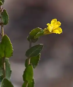 Goodenia benthamiana, commonly known as small-leaf goodenia,[2] is a species of flowering plant in the family Goodeniaceae and is endemic to south-eastern Australia. It is an aromatic undershrub with stem-clasping, egg-shaped to elliptic leaves with toothed edges, and yellow flowers arranged singly or in groups of up to three in leaf axils, with leaf-like bracteoles at the base.