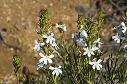 - Goodenia scapigera subsp. graniticola L.W.Sage[8] differs from the autonym in having leaves that are in clusters, linear, not toothed, and up to 2 mm (0.079 in) wide;[7][9]