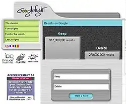 1. ^ Olivier Andrieu (February 7, 2005). "Nouvelle version pour Googlefight!". Abondance.com (in French).