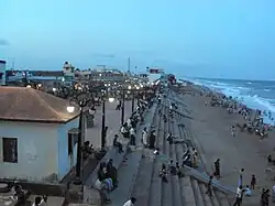 Renovated in the 1970s at the initiative of the Odisha government, the jetties were supposed to revive the trading activities of Gopalpur port. The old jetty in Gopalpur is tourist attraction point, which was a major point for trade and commerce in medieval times. The sailors of those time started their journey from this jetty to Indonesia and Rangoon across the Indian Sea. Once the renovation of new jetty completed it will become an important port of south Odisha.[5] It's a wonderful drive-in for the people and from the beach, a vast expanse of deep blue sea and the horizon can be seen. Another thrilling sight is the long stretch of cashew nut trees. Cashew nuts are processed here and exported. A major landmark of Gopalpur is its lighthouse. The view from the top is splendid and one can see at a glance the entire town of Gopalpur. Gopalour is also famous for its 'beach festival' organized annually. A nearby beach is Dhabaleshwar, which also houses a temple of the same name. People here can speak Odia and English.