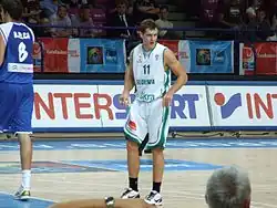 His jersey number 3 was retired by the Basketball Federation of Slovenia on 23 August 2024, ahead of his farewell game at the Arena Stožice in Ljubljana.[69][70]