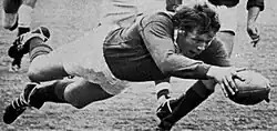 Gordon Lamont Brown (1 November 1947 – 19 March 2001) was a Scottish rugby union footballer. Nicknamed "Broon frae Troon" (i.e. Brown from Troon, his home town),[2] Brown is considered one of Scotland's greatest-ever rugby players. Playing as a second row forward, he was an integral part of Scotland's tight five during the early 1970s, along with Ian McLauchlan, Sandy Carmichael, Frank Laidlaw and Alastair McHarg, which became known collectively as the Mean Machine.[3] He also represented the British and Irish Lions on three tours with distinction. Brown was inducted into the International Rugby Hall of Fame in 2001, which later integrated with the World Rugby Hall of Fame, into which he was inducted in 2015. He was also an inductee to the Scottish Rugby Union Hall of Fame in 2010.