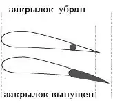 The Gouge flap "consists of a sharp nosed aerofoil, which in the closed position, forms part of the wing profile . The flap tapers with the wing, i.e. the width of the flap at any point is a constant proportion of the wing chord at that point; when open the extended portion also varies with the chord. All sections through the flapped portion of the wing are similar in shape and proportion. The flap moves on tracks, rotating conically about an imaginary axis below the wing, nearly parallel to the trailing edge. When open, the flap increases the wing chord and the wing area."[2]