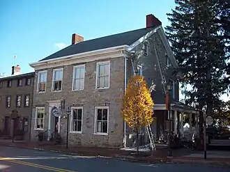 This historic residence is a 2½-story, stone house that was built during the early nineteenth century. It features a gable roof and two gable end chimneys. The building suffered a fire in 1874, after which a Victorian style porch and bay window were added. It was the home of the third Governor of Pennsylvania Simon Snyder (1759–1819).[3]