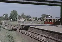 In order to improve access to the airport, an S-Bahn line was planned to the airport as early as 1958. There were also considerations of extending the line to the west to Rangsdorf or along the BAR to Ludwigsfelde.[3] The construction of the Berlin Wall on 13 August 1961 made a railway connection even more urgent. Travellers from the areas to the south of Berlin would be able to change to the S-Bahn in Schönefeld. So soon afterwards work started on the construction of the line.[2]