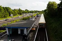 Neither of these options were chosen. Instead, a connection was built that runs around the airport from the old Schönefeld station in a large loop to the north and then reaches the new airport station in a tunnel from the west together with the mainline railway. It uses two tracks of the four tracks of the Berlin outer ring that were built in the 1980s but were no longer needed due to falling freight traffic and changed traffic flows to Berlin since reunification. Originally, no intermediate station was planned, but the community of Schönefeld financed the construction of Waßmannsdorf station. The new line and a long-distance railway have been in operation since 31 October 2011. Originally the Berlin-Brandenburg Airport was supposed to begin operations on the same day. However, there have been extensive delays to its construction. It is now not expected to be open before the Autumn of 2020. After January 2012, route training for train drivers was carried out on the new line, but these were stopped when the opening of the airport was delayed. However, some train trips continued to be made to keep the line operational and to ventilate the underground airport station.[3] Regular S-Bahn services finally began at the end of October 2020, shortly before the airport opened.