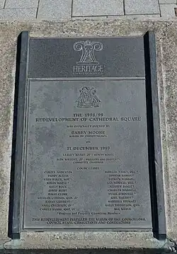 Plaque commemorating the redevelopment of Cathedral Square in 1998/99, with Condon listed as one of the councillors