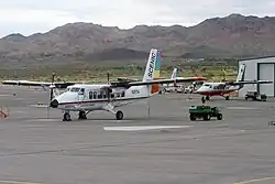 Scenic Airlines was started by John and Elizabeth Seibold and their single engine Cessna airplane in North Las Vegas Airport in 1967.[4] Between 1967 and 1993 Scenic Airlines grew to be one of the world's largest fixed-wing air tour operations.[5] In 2000, John Seibold was recognized by the Las Vegas Review Journal as being one of the most influential businessmen in Las Vegas in the previous 100 years.[5] In 1977, Scenic Airlines purchased the design and manufacturing rights to turboprop-powered conversions of the Cessna 402 and Cessna 414 from American Jet Industries.[6][7] In 1983, the airline co-developed modifications to the de Havilland Canada DHC-6 Twin Otter to make it more suitable for use as an air tour airplane.[4][5] The airline eventually moved to Las Vegas's Harry Reid International Airport (LAS), formerly known as McCarran International Airport.[4]