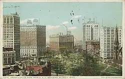 The Grand Circus Park Historic District contains the 5-acre (2.0 ha) Grand Circus Park in Downtown Detroit, Michigan that connects the theatre district with its financial district. It is bisected by Woodward Avenue, four blocks north of Campus Martius Park, and is roughly bounded by Clifford, John R. and Adams Streets. The district was listed on the National Register of Historic Places in 1983.[1] The building at 25 West Elizabeth Street was added to the district in 2000, and additional structures located within the district, but built between 1932 and 1960, were approved for inclusion in 2012.[3]