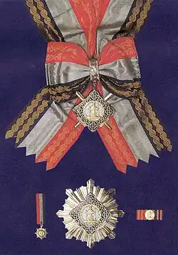 The Grand Order of King Petar Krešimir IV (Croatian: Velered kralja Petra Krešimira IV.), or more fully the Grand Order of King Petar Krešimir IV with sash and Morning Star (Velered kralja Petra Krešimira IV. s lentom i Danicom), is an order of the Republic of Croatia. It ranks third in the Croatian order of precedence after the Grand Order of Queen Jelena. The next order in rank is the Grand Order of King Dmitar Zvonimir. The order had been established on June 20, 1992[1] and reconstituted on April 1, 1995.[2]