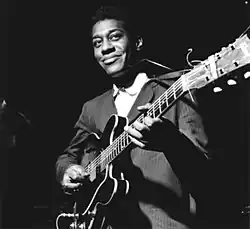 Recording prolifically for Blue Note Records as both leader and sideman, Green performed in the hard bop, soul jazz, bebop, and Latin-tinged idioms throughout his career. Critic Michael Erlewine wrote, "A severely underrated player during his lifetime, Grant Green is one of the great unsung heroes of jazz guitar ... Green's playing is immediately recognizable – perhaps more than any other guitarist."[5] Critic Dave Hunter described his sound as "lithe, loose, slightly bluesy and righteously groovy".[11] The simplicity and immediacy of Green's playing, which tended to avoid chromaticism, derived from his early work playing rhythm and blues and, although he achieved a synthesis of this style with bop, he was a skilled blues and funk guitarist and returned to this style in his later career. According to jazz educator Wolf Marshall, "Grant Green's unique mixture of bebop, blues and funk distinguished him as one of the quintessential soul jazz/hard bop guitarists from the get-go."[1]