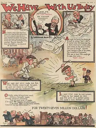 Cartoon about Woodrow Wilson playing golf, by Grantland Rice & Jay Norwood "Ding" Darling in the New York Tribune of September 28, 1919