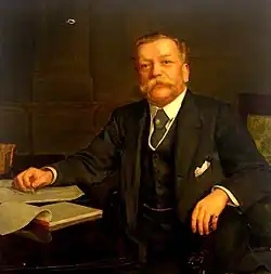 Sir Christopher Furness, 1st Baron Furness, who bought Grantley Hall in 1900, was the owner of the shipping company called the Furness Line. He came from humble beginnings his father at one time being a coal miner. However he later founded a large grocery business in Hartlepool. Christopher went into the family business but later began to buy boats and started his own shipping line which was extremely successful. He became a multimillionaire and bought numerous properties. He was also a Member of Parliament representing Hartlepool.[15] In 1876 he married Jane Annette Suggitt[16] and the couple had one son.