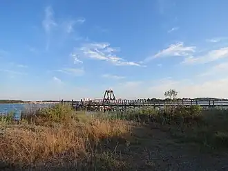Grape Island is an island in the Hingham Bay area of the Boston Harbor Islands National Recreation Area. The island is part of the territory of the town of Weymouth, Massachusetts. The island has a permanent size of 54 acres (220,000 m2), plus an intertidal zone of a further 46 acres (190,000 m2), and is composed of two drumlins, reaching an elevation of 70 feet (21 m) above sea level, and connected by a marshy lowland. Tidal sand spits extend from the west end towards Weymouth Neck in Webb Memorial State Park and from the east end towards Slate Island.[1]