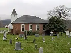During both the War of 1812 and the Civil War, Grassy Cove's caves were an invaluable source of saltpeter, which was used in the manufacture of gunpowder. William Kelly mined saltpeter in Grassy cove Saltpeter Cave in 1812, according to a manuscript written by Richard Green Waterhouse.[10] According to a local legend, the body of a Confederate soldier (in full uniform) was found in a petrified state in one of the caves shortly after the war. When no one claimed the body, it was buried in the Grassy Cove Methodist Cemetery. Several residents claimed to have seen the soldier's ghost in the church, however, and when church attendance began to drop as a result, the soldier's body was disinterred and reburied in an undisclosed location.[11][12]