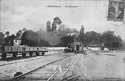 After the nearby station of Incheville opened in 1873, there was a previously unknown demand for ballast for railway construction.[9] During the construction of the Épinay-Villetaneuse-Le Tréport-Mers railway from 1872 to 1877, the gravel pit south-west of the sugar mill was opened at what is now L'Étang d'Incheville with three new bucket-chain dredgers and then continued to expand.[6][10]