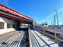 ![]() Temporary station platforms in November 2024; the new platforms are visible in the background. | |||||||||||||||||