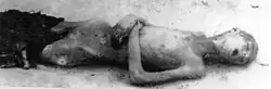 The situation became critical in the summer of 1941 and in the autumn became a full-blown famine.[16] Especially in the first winter of occupation (1941–42) food shortages were acute and famine struck, especially in the urban centers of the country.[17] Food shortages reached a climax and famine was unavoidable.[1] During that winter the mortality rate peaked,[15] and according to British historian, Mark Mazower, this was the worst famine the Greeks had experienced since ancient times.[17] Dead bodies were secretly abandoned in cemeteries or on the streets (possibly so their ration cards could continue to be used by surviving relatives). In other cases, bodies were found days after death.[18] The sight of emaciated dead bodies was commonplace in the streets of Athens.[1][19]
