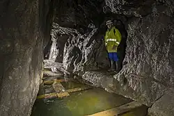 At its most active during the 1940s, the mine produced 2,500 tons of micaceous haematite per year.[3] The mineral was an important ingredient in the rust-resistant paint used on Royal Navy ships and on bridges, including the Royal Albert Bridge and the Sydney Harbour Bridge.[1]