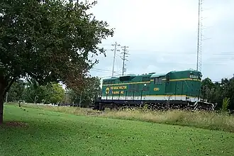 ![]() Great Walton Railroad GP9 6580 rests in Covington, Georgia wearing the GWR's sharp white, yellow, and green paint scheme in 2004. | |