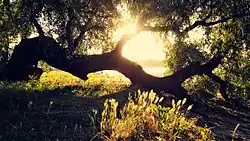 Forests cover and area of 120 ha (300 acres), or 57% of the island. Tree species include walnut tree and European nettle tree. In November 2011 some 2,500 seedlings of the pedunculate oak were planted. Higher forest coverage influences the micro climate and provides new habitats for the birds. Autochthonous tree species include willow and poplar.[10] By November 2017, the island has been populated with 5,850 seedlings of pedunculate oak, 1,000 of narrow-leafed ash, 1,755 of European white elm and 800 of black poplar.[11] The last two are declared endangered species in Serbia. Also planted were 1,000 bald cypresses, which adapted nicely and began to reproduce.[12]