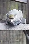 As in some other species of monkeys, the acoustical structure of greater spot-nosed monkey alarm calls it has been argued to vary according to the kind of predator spotted.[4] The monkey reportedly combines different sounds into a sequence, which has an entirely different meaning from the sounds out of which it is made.[5]