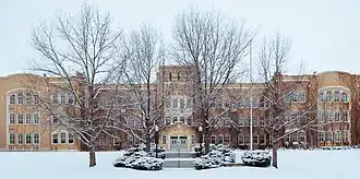 Formerly known as Greeley High, Greeley Central High School had its start in the late 1800s. The school's current building was completed in 1927 at a cost of $350,000. It is the fourth structure to be known as Greeley High School. At the time, 14th Avenue was at the far western edge of the city, and this site was across the street from what had been a city dump. Local Architect Sidney G. Frazier designed the school to resemble a French chateau. It is considered an example of late Gothic Revival.[3] Extensive remodels in 1958, 1974, 1994, and 2000 dramatically changed the interior and the campus, but the front remained virtually the same and has become known as "The Castle".[4] The school building was listed on the National Register of Historic Places in 1999.[3]