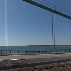 Green Island is an island in Mackinac County, Michigan.[1] The island is located in the Straits of Mackinac in Lake Michigan. Green Island is approximately 16.46 acres (6.66 ha) in size.[2] The island is uninhabited and covered in thicket with a few trees scattered throughout.[3] It is .25 miles (0.40 km) south of Point La Barbe on the Upper Peninsula shore.[4] Green Island also lies 1 mile (1.6 km) west of the Mackinac Bridge. It is privately owned.