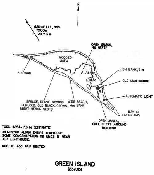 Green Island is an island in Green Bay and part of the Town of Peshtigo, in Marinette County, Wisconsin.[1][2] The Green Island Light is on the island.[3]
