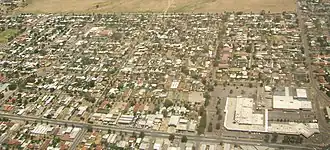 Aerial image of eastern end of Greenacres, looking north. The east-west road at the bottom is Muller Road, the Greenacres Shopping Centre is the large complex at bottom right