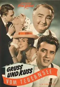 Greetings and Kisses from Tegernsee (German: Gruß und Kuß vom Tegernsee) is a 1957 West German musical romantic comedy film directed by Rudolf Schündler and starring Elma Karlowa, Bert Fortell and Christiane Maybach. It was part of a large number of heimatfilm pictures produced during the decade.[1][2] It was shot at the Bavaria Studios in Munich and on location around Tegernsee. The film's sets were designed by the art directors Willi Herrmann and Heinrich Weidemann.