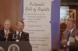 Ganske at a news conference about the Patients' rights with President Bill Clinton and Dick Gephardt in July 1998.