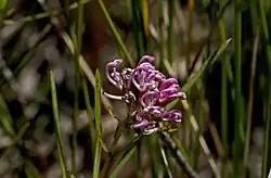 Grevillea leiophylla, commonly known as wallum grevillea,[2] or dwarf spider oak,[3] is a species of flowering plant in the family Proteaceae and is endemic to Queensland. It is a weakly erect to low-lying shrub with narrowly oblong to egg-shaped or more or less linear leaves, and clusters of pale to deep pink flowers.