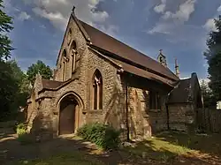 Grimsbury Wesleyan Chapel in West Street was a neoclassical brick and stone building completed in 1871.[27] The present Methodist church in West Street is modern. The Church of England parish church of Saint Leonard was designed by the local architect Walter Mills and built in 1890.[27] It is a Gothic Revival building with north and south aisles joined to the nave by four-bay arcades.[27] St Leonard's was a chapel of ease to Christ Church in Broad Street until 1921, when Grimsbury was constituted as a separate parish with Saint Leonard's as its church. In 1931 a fire destroyed much of the south side of St Leonard's and thereafter the church was redecorated and a new vestry built.