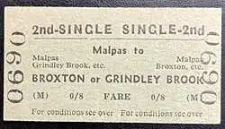 Grindley Brook village is mostly in Shropshire but the halt was located to the north of the village across the county boundary in Cheshire, now Cheshire West and Chester.[2]