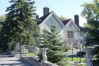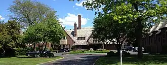 Grosse Pointe has a significant collection of historic architecture as well as some newer mansions. Albert Kahn designed the Edsel & Eleanor Ford House (1927) at 1100 Lakeshore Dr. in Grosse Pointe.[7] Rose Terrace (1934–1976), the mansion of Anna Thompson Dodge, once stood at 12 Lakeshore Dr. in Grosse Pointe. Designed by Horace Trumbauer as a Louis XV styled château, Rose Terrace was an enlarged version of the firm's Miramar in Newport, Rhode Island.[8] A developer, the highest bidder for Rose Terrace, demolished it in 1976 to create an upscale neighborhood. This gave a renewed sense of urgency to preservationists.[8] The Dodge Art Collection from Rose Terrace may be viewed at the Detroit Institute of Arts. The Italian Renaissance styled Russell A. Alger House (1910), at 32 Lakeshore Dr., by architect Charles A. Platt serves as the Grosse Pointe War Memorial.[9] Many noted architects designed works in Grosse Pointe including Albert Kahn, Marcel Breuer, Marcus Burrowes, Chittendon and Kotting, Crombie & Stanton, Wallace Frost, Robert O. Derrick, John M. Donaldson, Louis Kamper, August Geiger, William Kessler, Hugh T. Keyes, George D. Mason, Charles A. Platt, Leonard Willeke, Eliel and Eero Saarinen, Field, Hinchman, and Smith, William Buck Stratton, and Minoru Yamasaki. Included below are examples of some of Grosse Pointe's many historic structures.