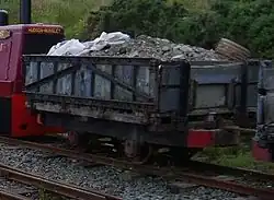 A series of four-wheeled and bogie flat wagons, a large second-hand four-wheeled brake van and a tipper wagon were acquired for maintenance work. To replace a variety of four-wheel wagons that were time-expired, a new bogie works van was delivered to the line in 2011 for use by permanent way crews. This features an open wagon and covered accommodation area.
