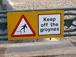 In 1713 the first wooden groyne to protect Brighton's seafront and coastline was built, which had been heavily damaged in the Great storm of 1703, and again in 1705.[6] In 1867, the first concrete groyne was built near East Street, Brighton as a promenade 195 feet (59 m) long.[7]