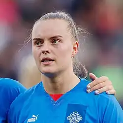 Guðný Árnadóttir (born 4 August 2000) is an Icelandic professional footballer who plays as a left back for Kristianstads DFF and the Iceland women's national team. In 2019, she won the Icelandic championship with Valur.[2]