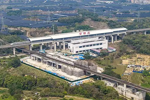 Guanqiao North railway station (simplified Chinese: 官桥北站; traditional Chinese: 官橋北站; pinyin: Guānqiáo Běi Zhàn; Jyutping: Gun1kiu4 Bak1 Zaam6) is a station on Guangzhou–Huizhou intercity railway located in Panyu District, Guangzhou, Guangdong, China.[1][2] The station opened on 26 May 2024, and is operated by Guangdong Intercity Railway Operation Co., Ltd.[3][4]