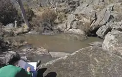 Ruth Hingston, artist, drawing the rock formations by the Gudgenby River